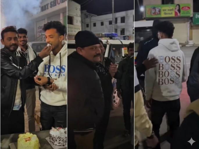सोशल मीडियावर व्हायरल झालेल्या या व्हिडिओमध्ये, मुख्य आरोपी अयान अहमद याने 'BOSS' असं मोठ्या अक्षरात लिहिलेले टी-शर्ट घातले होते आहे. मध्यरात्रीच्या सुमारास भररस्त्यात फटाक्यांची आतिषबाजी करत त्याने केक कापला. यावेळी ड्युटीवर असलेले पोलीस कर्मचारी तिथे केवळ उपस्थितच नव्हते, तर त्यांनी मोठ्या आनंदाने अयानला केक भरवून शुभेच्छाही दिल्या. ज्या आरोपीने अनेक मुलींचे आयुष्य उद्ध्वस्त केले, त्या नराधमासोबत पोलिसांची ही मैत्री पाहून पोलीस दलासह सर्वांनाच धक्का बसला आहे.