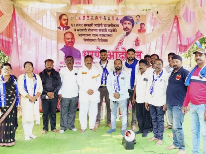 उज्वल भालेकर, अमरावती : राज्य शासनाच्या सरकारी शाळेचे खासगीकरण व नोकरभरती कंत्राटी पद्धतीने घेण्याच्या निर्णयाविरोधात मागील पाच दिवसांपासून जिल्हाधिकारी कार्यालयाबाहेर आझाद समाज पार्टीच्या वतीने बेमुदत धरणे आंदोलन सुरू आहे. या आंदोलनाला रविवारी दर्यापूरचे आमदार बळवंत वानखडे यांनी भेट दिली. यावेळी त्यांनीही सरकारच्या खासगीकरणाचा निषेध करत आंदोलनाला पाठिंबा दिला.