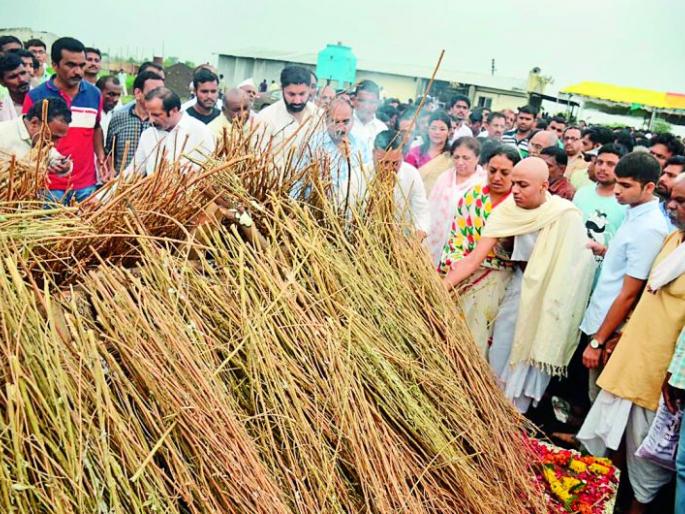 अमरावती : काँग्रेसचे ज्येष्ठ नेते, माजी आमदार भय्यासाहेब उपाख्य चंद्रकांत रामचंद्र ठाकूर यांच्या पार्थिवावर शुक्रवारी मोझरी येथील त्यांच्या शेतात अंत्यसंस्कार करण्यात आले. ज्येष्ठ कन्या व तिवस्याच्या आमदार यशोमती ठाकूर, कनिष्ठ कन्या संयोगिता निंबाळकर तसेच नातू यशवर्धनसह अन्य नातवंडांनी त्यांच्या पार्थिवाला भडाग्नी दिला. यावेळी राज्यातूनच नव्हे, तर अन्य राज्यातील सर्वपक्षीय नेतेमंडळी उपस्थित होती. त्यांना चाहणाऱ्या हजारोंच्या जनसागराने यावेळी साश्रू नयनांनी श्रद्धांजली अर्पित केली.
