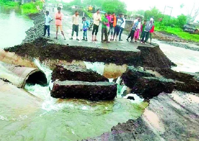 लोकमत न्यूज नेटवर्कपरतवाडा : एक-दोनदा नव्हे तिसऱ्यांदा परतवाडा-अकोला मार्गावरील पर्यायी पूल वाहून गेला. अकोला महामार्गावरील सावळी-दातुरा येथे हा प्रकार घडला. मंगळवारी दिवसभर हा पूल तयार करण्यात आला होता. नदीचा पूल वाहून गेल्यामुळे नागरिकांसह विद्यार्थ्यांनाही जीवघेणा प्रवास करावा लागत आहे. कन्स्ट्रक्शन कंपनीच्या बेपर्वाईमुळे या महामार्गावरील वाहतूक ठप्प आहे. जीवितहानी झाल्यास त्याला जबाबदार कोण, असा सवाल यानिमित्ताने उपस्थित झाला आहे.परतवाडा-अकोला महामार्गाच्या चौपदरीकरणाचे काम एमएसकेएल कन्स्ट्रक्शन कंपनीला राष्ट्रीय महामार्ग प्राधिकरणातर्फे देण्यात आले आहे. संबंधित कन्स्ट्रक्शन कंपनीच्या कामावर आता प्रश्न निर्माण झाले आहे. मागील पंधरा दिवसांपासून अकोला-परतवाडा हा महामार्ग सावळी-दातुरा गावानजीक तिसºयांदा तयार करण्यात आलेला पूल वाहून गेल्यामुळे ठप्प पडला आहे. सपन नदीवर असलेला जुना पूल पूर्णत: जमीनदोस्त करण्यात आला. त्या ठिकाणी उंच पूल तयार होणार आहे. मात्र, पावसाळ्याचे दिवस पाहता सिमेंट पाइप टाकून मातीने झाकण्यात आले. नदीसह सपन प्रकल्पातून सोडलेल्या पाण्यात तिसºयांदा हा पूल वाहून गेला. या घटनेला संबंधित कन्स्ट्रक्शन कंपनी व विभाग जबाबदार असल्याचा आरोप पर्यावरण संघटनेचे योगेश खानजोडे यांनी केला आहे.महामार्ग अभियंता व कंपनीवर प्रश्नचिन्ह?पावसाळ्याच्या दिवसांत नदीच्या प्रवाहाचा कुठलाच अंदाज संबंधित राष्ट्रीय महामार्गाच्या अभियंत्यांना येऊ नये, यावरच आश्चर्य व्यक्त केले जात आहे. एमएसकेएल कंट्रक्शन कंपनीने बेजबाबदारपणाचा कळस गाठला असताना, संबंधित अभियंत्यांचे संगनमत नागरिकांच्या जिवावर बेतणारे ठरले आहे. यावर वरिष्ठ अधिकारी व पांढरपेशे गप्प बसून आहेत, तर जीवघेणा प्रवास सुरू असतानाही राष्ट्रीय महामार्ग प्राधिकरण आणि संबंधित कंत्राटदार कुंभकर्णी झोपेत आहेत.दैनंदिन कामात व्यत्ययपरतवाडा-अकोला महामार्गावर सावळी, वडगाव फत्तेपूर, पथ्रोट परिसरातील १५ ते २० गावे आहेत. तालुका मुख्यालयी येणाºया नागरिकांसह मोठी बाजारपेठ असल्याने चिल्लर व्यापारी, विद्यार्थी रुग्ण यांच्यासाठी हा मार्ग सोयीचा होता. आता दहा ते पंधरा किलोमीटर फेºयाने ये-जा करावी लागत आहे. गंभीर रुग्णांना वाटेतच मरण देणारा पूल ठरला आहे.विद्यार्थ्यांचा जीवघेणा प्रवासदोन भागात वसलेल्या सावळी-दातुरा गावाच्या मधून सपन नदीचा पूल आहे. वॉर्ड १ मध्ये जिल्हा परिषदेची शाळा आहे. बुधवारी सकाळी पल्लवी कस्तुरे, रीतू बारस्कर,पायल, प्रजापती, तुलसी कस्तुरे दुर्गेश धुर्वे तसेच वॉर्ड क्रमांक ३ मधील जवळपास दहा विद्यार्थ्यांना तेथून जाणारे मोहन पाटणकर, प्यारेलाल प्रजापती,