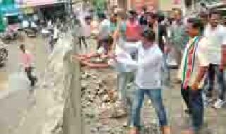 अंबादेवी मंदिरासमोरील भिंतीची मनसेकडून तोडफोड