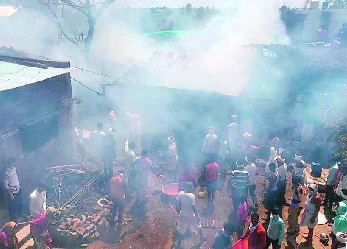 बुधवारी मुऱ्हा देवी येथे दुपारी १.३० वाजता मोठी आग लागून अ. सलीम शे. नजीर, शिवदास पखान, हरिदास पखान, अ. कदीर शे. बशीर यांची घरे जळून खाक झाली. जीवनावश्यक वस्तूंसह शेतीपयोगी अवजारेही जळाल्याने ऐन मशागतीच्या दिवसांत त्यांची पंचाईत झाली आहे. या आगीत अ. सलीम शे. नजीर यांचे दोन बैल जागीच होरपळून दगावले, तर एक बैल पूर्णत: भाजला गेला. एक म्हैस आणि एक बोकडसुद्धा दगावला. त्यामुळे मोठे नुकसान झाले. पाच दिवसांपूर्वी सलीम यांनी ७५ हजारांचीबैलजोडी आणि ६० हजारांची म्हैस घरातील सर्व पुंजी खर्चून आणली होती. गोठ्याला आग लागल्यानंतर जनावरांना सोडण्यास गेलेल्या अ. सलीमदेखील भाजले गेले. शिवदास पखान, हरिदास पखान, अ. कदीर शे. बशीर यांच्या घरातील जीवनावश्यक वस्तूंसह शेतीपयोगी अवजार जळाल्याने मोठे नुकसान झाले. अतुल पखान यांचे शेतीपयोगी अवजार जळाले. आग आटोक्यात आणण्याकरिता ग्रामस्थांनी मिळेल त्या साधनाने पाण्याचा मारा केला. मात्र, आग आटोक्यात येण्याचे नाव घेत नव्हती.