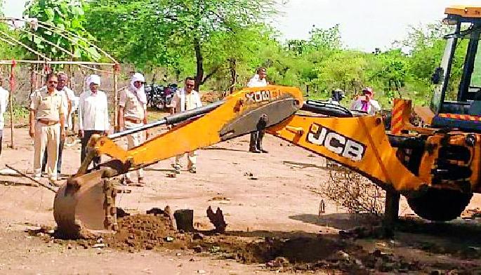 लोकमत न्यूज नेटवर्कपोहरा बंदी : वनजमिनीवर राहुट्या टाकून वनक्षेत्रात गुरे चारणाऱ्या काठियावाडी पशुपालकांना चांदूर रेल्वे वनपरिक्षेत्र अधिकाऱ्यांनी हादरा दिला. त्यांच्यासह गुरांना वनक्षेत्राबाहेर काढून ते वास्तव्य करीत असलेल्या जागी बुलडोजरने चर खणण्यास सुरुवात केली आहे. शुक्रवारी सुरू झालेली ही कारवाई शनिवारीदेखील सुरू होती.चांदूर रेल्वे वनपरिक्षेत्र अंतर्गत येणाऱ्या चिरोडी वर्तुळातील दक्षिण चिरोडी बीट वनखंड क्रमांक ३०५ मध्ये काठियावाडी पशुपालकांनी पावसाळ्यापूर्वीच आपल्या राहुट्या तयार करून घेतल्या होत्या. त्यानंतर ते हजारोंच्या संख्येतील गुरांसह दाखल झाले. या राहुट्या आणि पशूंची चराई वनक्षेत्रात होत असल्याचे ‘लोकमत’ने लक्षात आणून दिले होते, हे येथे विशेष. त्यावरून चांदूर रेल्वे वनविभागाने काठियावाडींना नोटीस बजावली. मात्र, ते ठाम होते.अखेर वनपरिक्षेत्र अधिकाºयांच्या नेतृत्वात बुलडोजर राहुट्यांवर चालला. या ठिकाणी चर खोदून यापुढे वास्तव्य होणार नाही, याची दक्षता घेतली जात आहे. पशुपालक गुरांसह वर्धेकडे गेल्याचे सूत्रांची माहिती आहे.पाच राहुट्या, एक हेक्टर क्षेत्रदक्षिण चिरोडी बीटच्या परिसरात एकूण पाच राहुट्यांमध्ये पशुपालकांचे वास्तव्य होते. गुरे कोंडण्यासाठी सुमारे एक हेक्टर क्षेत्र त्यांनी साफ करून ठेवले होते.यांनी केली कारवाईवनपरिक्षेत्र अधिकारी आशिष कोकाटे यांच्या नेतृत्वात चिरोडी प्रभारी वर्तुळ अधिकारी रवींद्र विधळे, वनरक्षक अभिजित बगळे, अतुल धस्कट, गोविंद पवार, राजन हिवराळे, वनमजूर शालिक पवार, राजू चव्हाण, मंगल जाधव यांनी कारवाई केली.