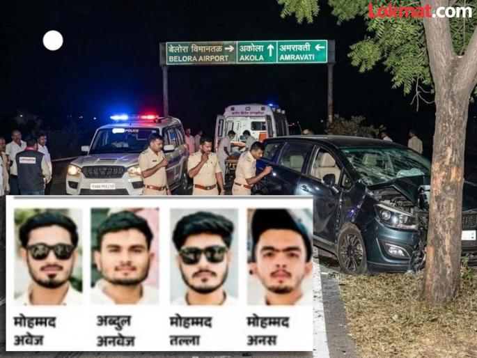 मोहम्मद अनस मोहम्मद शाहीद (वय २२), मोहम्मद तलहा मोहम्मद अनिस (२२), मोहम्मद अवेज अब्दुल शकील (२१), अब्दुल अनवेज अब्दुल सलीम (२२) अशी मृतांची नावे आहेत, तर जखमींमध्ये मोहम्मद हुजेफा मोहम्मद अरिफ (२०), मोहम्मद अनस मोहम्मद अनिस (२०), मोहम्मद अशर इरशाद अहमद (२६) यांचा समावेश आहे. जुन्या वस्तीतील हे युवक सोमवारी रात्री १ वाजण्याच्या सुमारास मोहम्मद अशर याच्या कारने कॅटीनवर चहा पिण्यासाठी जात असताना अज्ञात ट्रकने त्यांच्या वाहनाला मागून जोरदार धडक दिली. यामुळे कार रस्त्यालगतच्या काँक्रीट पिलरला धडकली व त्यानंतर कोलांट्या घेत झाडावर आदळली. अपघाताची माहिती मिळताच पोलिस घटनास्थळी दाखल झाले. जखमींना खासगी रुग्णालयात दाखल करण्यात आले, तर जागीच दगावलेल्या चौघांचे मृतदेह विच्छेदनासाठी जिल्हा सामान्य रुग्णालयात पाठविण्यात आले.