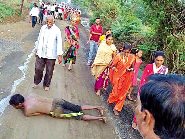 लोटांगण कार्यक्रमासाठी संपूर्ण रस्ता स्वच्छ धुण्यात आला. पहाटे ४ वाजतापासून भक्त आंघोळ करीत घरीच पूजा केली. रस्त्यावर रांगोळ्या अन् फुले सजविण्यात आली होती. मागील तीन वर्षांपासून बिच्छन नदीला पाणी नसल्याने टँकरने एक खड्डा करुन पाणी सोडण्यात आले होते. तीन दिवस विविध कार्यक्रम आणि जत्रा येथे भरली. या यात्रेसाठी मोठ्या संख्येने भाविकांनी गर्दी केली होती,