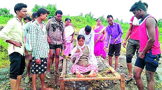 नाल्याच्या पुरातून गर्भवतीला खाटेवरुन नेले रुग्णालयात