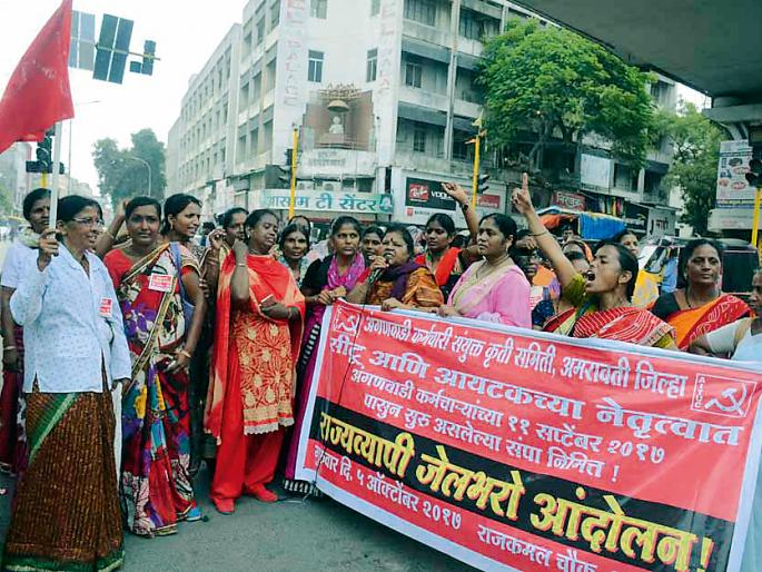 अमरावती : जिल्ह्यातील अंगणवाडी सेविका व मदतनिसांनी विविध प्रलंबित मागण्यांच्या पूर्ततेसाठी एल्गार पुकारला आहे. ५ आॅक्टोबर रोजी येथील राजकमल चौकात जेलभरो आंदोलन करीत कृती समितीच्यावतीने शासनाचे मागण्यांकडे लक्ष वेधले.