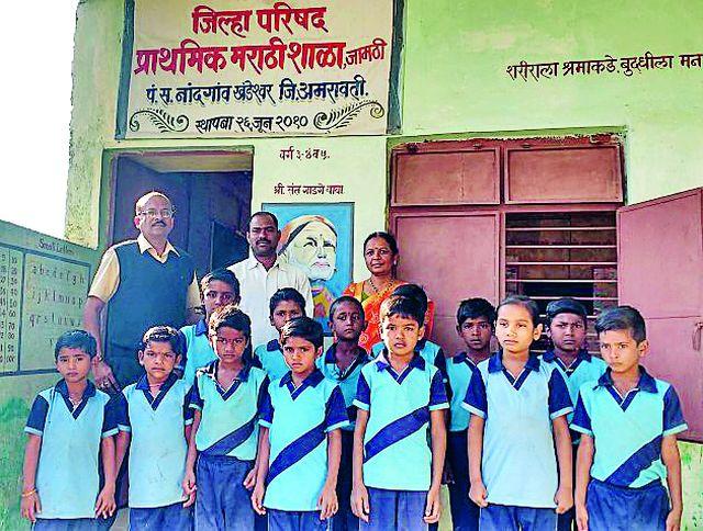नांदगाव खंडेश्वर तालुक्यातील जामठी या गावातील जिल्हा परिषद प्राथमिक शाळेची ही कहाणी. गावाची लोकसंख्या २२५ आणि कुटुंबसंख्या ७५ च्या आसपास. येथील ९५ टक्के नागरिक धनगर समाजाचे असून, मेंढीपालन हा त्यांच्या उपजीविकेचा मोठा आधार. त्यामुळे पाठीवर बिºहाड घेऊन गावोगावी फिरणे आलेच. मुलाबाळांना घेऊन चराईसाठी जागा मिळेल तेथे त्यांचा बेडा असतो. मग त्यांच्या मुला-मुलींना कुठले शिक्षण? मात्र, शिक्षकांनी त्यावरही उपाय शोधून मुलांना शिक्षणाच्या प्रवाहात आणले. २०१० मध्ये येथे जिल्हा परिषदेच्या पहिली ते चौथीपर्यंतच्या प्राथमिक शाळेला सुरुवात झाली. इमारत नसल्याने गुरांचा गोठा हीच शाळेची इमारत होती. त्यावेळी हजेरीपटावर मुलांची संख्या ४५ असली तरी प्रत्यक्षात १९ विद्यार्थी शाळेत दिसायचे. तत्कालीन शिक्षक व विद्यमान मुख्याध्यापक उमेश मारोतराव शिंदे यांनी शोध घेतला तेव्हा बहुतांश मुले बेड्यावर आढळले. त्यांनी या पालकांना विश्वास दिला आणि घरी असलेल्या आजी-आजोबांच्या भरवशावर त्यांना सोडण्याची विनंती केली. त्यांची धडपड पाहून पालकांना शिक्षणाचे महत्त्व कळले. शिंदे हे बेड्यावरून या मुलांना शाळेत घेऊन आले आणि त्यावेळी या मुलांच्या राहण्याची, भोजनाची, आरोग्याची जबाबदारीही स्वीकारली. यासाठी शाळेतील सहायक शिक्षक अलका राजेंद्र नेरकर यांची त्यांना मोलाची साथ लाभली.