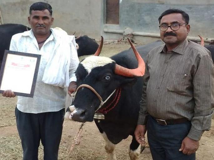 अमरावती - शासनाच्या पशुसंवर्धन विभागाच्यावतीने जालना येथे या आठवड्यात आयोजित राष्ट्रीय स्तरावरील पशुप्रदर्शनात परतवाडा येथील मदन नंदवंशी यांच्या दुधाळ म्हशीने तृतीय क्रमांक पटकावला. याबद्दल मुख्यमंत्री देवेंद्र फडणवीस यांच्या हस्ते म्हशीचे मालक मदन नंदवंशी यांना ५० हजारांचे रोख बक्षीस देण्यात आले.