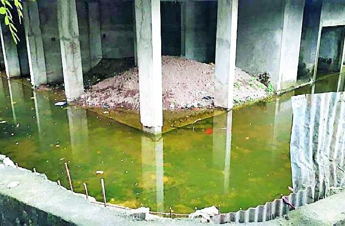 ठळक मुद्देशहरात पाण्याची तळी । अर्धवट संकुलांमध्ये साचले पाणी, डेंग्यूच्या प्रसाराची दाटली भीती