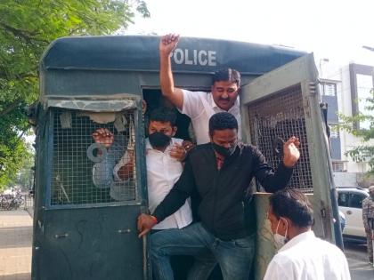 राजापेठ उड्डाण पुलावरून छत्रपती शिवाजी महाराजांचा पुतळा हटविण्याच्या कार्यवाहीचा निषेध म्हणून स्वराज्य सामाजिक संघटनेच्यावतीने स्थानिक ईर्विन चौकात महापालिका आयुक्तांच्या प्रतिकात्मक पुतळ्याचे दहन करण्यात आले. यावेळी महापालिका प्रशासनाविरूद्ध जोरदार नारेबाजी करण्यात आली. दरम्यान पोलिसांनी अमोल ईंगळे यांच्यासह कार्यकर्त्यांना ताब्यात घेतले.