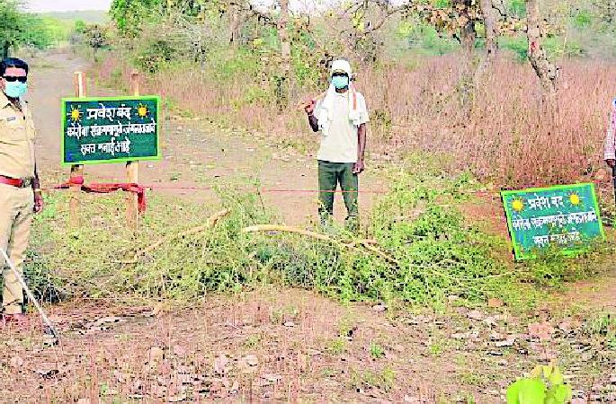 लोकमत न्यूज नेटवर्कअमरावती : कोरोनाच्या पार्श्वभूमीवर वन्यजीव आणि वनांच्या सुरक्षेसाठी वडाळी दक्षिण वनबीट जंगल क्षेत्रात प्रवेश मनाई करण्यात आली आहे. वन अधिकारी, कर्मचारी यांच्याशिवाय कोणालाही प्रवेश नाही, असे फलक सीमेवर झळकू लागले आहेत.राज्यात व्याघ्र प्रकल्प, अभयारण्य, राष्ट्रीय उद्याने, वन विभागाचे उद्याने ३० एप्रिलपर्यत ‘लॉकडाऊन’ करण्यात आले आहे. मात्र, संचारबंदीच्या काळात वन्यजीवांची शिकार, जंगलाना आगी लागण्याचा घटनांमध्ये वाढ होण्याची शक्यता बळावली आहे. त्यामुळे वनकर्मचाऱ्यांनी शहराला जोडणाऱ्या जंगलाचे मार्ग सीमेवर सील केले आहे. राखीव वने, जंगलात कोणत्याही व्यक्तीने प्रवेश करू नये, यासाठी सीमेवर फलक लावण्यात आले आहे. जंगलात प्रवेश मनाई आदेश असे ठळकपणे फलक लावण्यात आले आहे. वडाळी वनपरिक्षेत्र अंतर्गत दक्षिण वनबीटचे वनरक्षक प्रफुल्ल फरतोडे यांनी शहरातून जंगलाकडे येणारे मार्ग सील केले आहे.‘लॉकडाऊन’च्या काळात विनापरवानगीने प्रवेश केल्यास भारतीय वनअधिनियम कायद्यानुसार कारवाई करण्यात येईल, असे स्पष्ट करण्यात आले आहे. वन्यजीव वाचेल तर, जंगल वाचेल यानुसार वनकर्मचारी जंगलाच्या सुरक्षेसाठी कर्तव्य बजावत आहे. दक्षिण वडाळी बीटचे प्रफुल्ल फरतोडे यांनी त्यांच्या वाढदिवसाचे औचित्य साधून शनिवारी जंगलात १० वडवृक्षाचे रोपण करीत सामाजिक कार्याचा परिचय दिला.