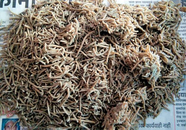 तीन ग्रामपंचातींमध्ये या पाकीटांचे वाटप झाल्याची धक्कादायक बाब पुढे आली आहे. सदर आहाराची पाकीटे गुरूवारीच पंचायत समितीला प्राप्त झालीे. पंचायत समितीच्या महिला व बालविकास विभागांतर्गत अंगणावाड्यात पोषण आहार देण्यात येतो. ६ महिने ते ३ वर्षापर्यंतच्या मुुलांना अंगणवाडीमध्ये सदर शेवयांचा पोषण आहार देण्यात येतो. सांगळूद येथील अंगणवाडीमध्ये ७० लहान मुले शिक्षण घेत आहे. अंगणवाडी शिक्षकेच्या सदर बाब लक्षात आली. यानंतर गावच्या सरपंच मंजुषा नवालकार यांनी सदर पाकीटांची पाहणी केली असता पाकीटामध्ये बुरशी लागलेली आढळली. अळ्या सुध्दा आढळल्याने एकच खळबळ उडाली. येथे उपस्थित चिमुकल्यांना सदर आहार देण्यात आला नव्हता. त्यामुळे कुठलीही हानी झाली नाही. आहाराच्या पाकीटावरील ग्राहक संपर्क क्रमांकावर संपर्क साधला असता तो नंबर बंद होता. बीडीओने सदर आहाराची पाकीटे वापरू नये असे आदेश दिले आहे. महिला व बालविकास अधिकारी मीना देशमुख यांच्याशी संपर्क साधण्याचा प्रयत्न केला असता तो होऊ शकला नाही. पोषण आहार हा चिमुकल्यांना चांगले आरोग्य होण्यासाठी देण्यात येतो. पण जर आहारात अशाप्रकारे बुरशी व अळ्या आढळत असेल तर हा तर चिमुकल्यांच्या जीवाशी खेळ आहे. हा आहार जर चिमुकल्यांच्या पोटात गेला असता तर त्यांना आजाराला सामोरे जावे लागले असते. संबधित नागपूर येथील त्या ओद्योगिक सहकारी संस्थेवर कारवाई करावी, अशी मागणी होत आहे. सरपंच्यांनी बीडीओनांना सदर अळ्या असलेली पाकिटे दाखविली.