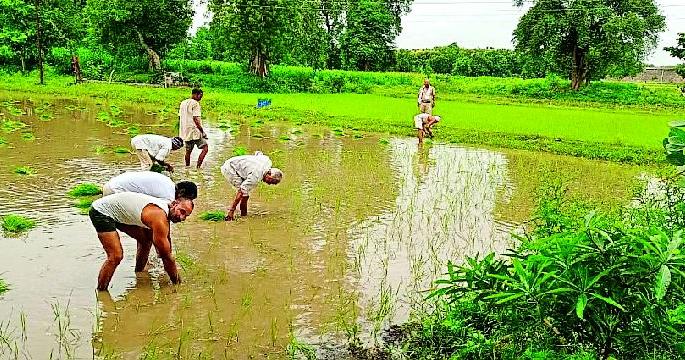 धान शेतीसाठी गुडघाभर पाण्यात श्रम