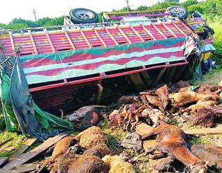 ट्रक उलटून वाहकासह ९० शेळ्या दगावल्या