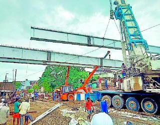 सात तासांचा मेगाब्लॉक ; रेल्वे उड्डाणपुलावर चार गर्डर चढविले