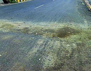 उड्डाणपुलाच्या उतारावर धोकादायक खड्डा
