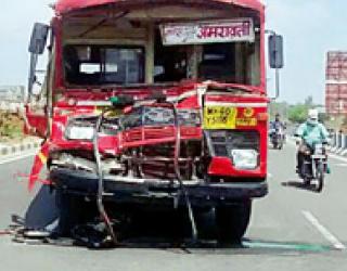 एसटी टिप्परवर धडकली चालक गंभीर, १२ जखमी
