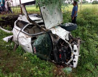 कारचे नियंत्रण सुटून भीषण अपघात, तिघांचा जागीच मृत्यू, एकाचा मृतदेह झाडावर, दुसरा गाडीत तर तिसरा नालीत