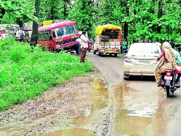 लोकमत न्यूज नेटवर्कचिखलदरा : परतवाडा-इंदूर आंतरराज्य महामार्गावरील सेमाडोह येथील सिपना नदीवर भूतखोरा पुलावर मंगळवारी रात्री ९ वाजता आणि बुधवारी पहाटे ५ वाजता अशी दोन वाहने अडकल्याने चार तास हा मार्ग पूर्णत: ठप्प होता. रस्त्याच्या दोन्ही बाजूंना वाहनांच्या लांब रांगा लागल्याने मालवाहतूकदारांसह प्रवाशांना ताटकळत राहावे लागलेपरतवाडा ते धारणी-खंडवा-इंदूर या आंतरराज्य महामार्गात मेळघाटच्या बिहाली, घटांग, सेमाडोह, हरिसालपर्यंत सर्वाधिक घाटवळणाचा मार्ग आहे. मेळघाट व्याघ्र प्रकल्पाच्या अतिसंरक्षित जंगलातून हा महामार्ग आहे. दोन वर्षांपासून हा मार्ग पूर्णत: खडतर झाला, तर दुसरीकडे महाराष्ट्र-मध्य प्रदेश अशी आंतरराज्यीय जड वाहतूक मोठ्या प्रमाणात रात्रंदिवस या मार्गावरून आहे. प्रशासनाचा पत्रव्यवहार आणि राज्य शासनाचे वेळकाढू धोरण सर्वसामान्य नागरिकांच्या जिवावर उठले आहे.वाहनांच्या रांगासेमाडोह येथील मुलताई ढाणानजीक हा भूतखोरा नामक अरुंद असा पूल आहे मंगळवारी रात्री धारणीकडून लाकडाची वाहतूक करणारा ट्रक येथे नादुरुस्त होऊन बंद पडला, तर बुधवारी पहाटे ५ वाजताच्या दरम्यान एका लहान चारचाकीधारकाने पुलावरून पुढे नेण्याच्या प्रयत्नात वाहन अडकविले. त्यामुळे वाहनांच्या दुतर्फा रांगा लागल्या होत्या.ट्रक अपघाताची मालिकामागील दोन महिन्यांत बुरडघाट ते सेमाडोह दरम्यान आठ ते दहा वेळा ट्रक रस्त्यावर कोसळून अपघात झाला आहे. नादुरुस्त व खड्डेमय रस्त्यांमुळे अपघात होत आहेत.भूतखोरानजीक दोन वाहने अडकल्याने वाहतूक खोळंबली होती. नादुरुस्त वाहन काढल्यानतर वाहतूक सुरळीत झाली.- महादेव मानकर, शाखा अभियंता, साबांवि, चिखलदरा
