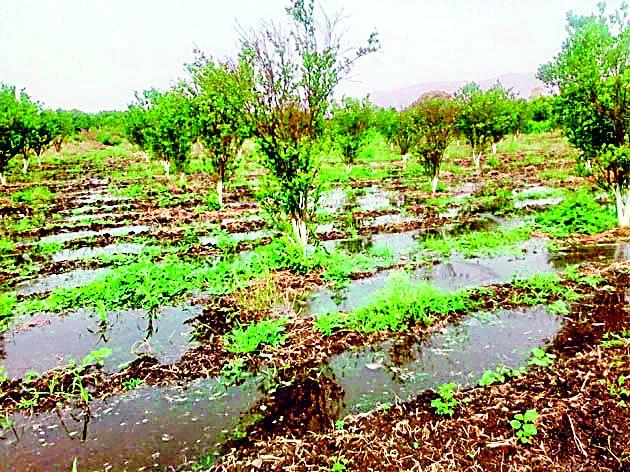 अपुऱ्या कालव्याच्या बांधकामामुळे मोठ्या प्रमाणात पाणी संत्राबागेसह शेतात शिरून त्याचा तलाव होत आहे.