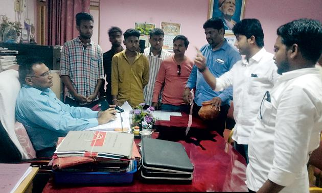 युवा स्वाभिमान संघटनेचे जिल्हाध्यक्ष अनूप अग्रवाल यांच्या नेतृत्वात दुपारी अडीच वाजता १० ते १५ विद्यार्थ्यांनी परीक्षा व मूल्यांकन विभागाचे संचालक जयंत वडते यांच्या दालनात प्रवेश केला. येथील आयबीएसएस अभियांत्रिकी महाविद्यालयातील हितेश सानोटकर या विद्यार्थ्याच्या सिव्हिल फोर सेमिस्टर पेपरच्या मुल्यांकनात घोळ असल्याचा आरोप नोंदविण्यात आला. अगोदर सात नंतर १२ पुन्हा आठ गुण कसे? याबाबत परीक्षा संचालकांना विचारणा केली. परीक्षा संचालकांनी पेपरचे मूल्यांकन करणारी यंत्रणा वेगळी असून गुण कसे दिलेत, हे मी सांगू शकत नाही? मात्र याबाबत कुलगुरू मुरलीधर चांदेकर याबाबत सकारात्मक निर्णय घेतील, अशी माहिती देत त्यांनी आंदोलनकर्त्यांची समजूत काढली. परंतु युवा स्वाभिमान विद्यार्थी संघटनेचे अनूप अग्रवाल, अभिजित देशमुख, मंगेश कोकाटे, गौतम हिरे, अंकुश ठाकरे आदी समजण्याच्या मन:स्थितीत नव्हते. अखेर अभिजित देशमुख, मंगेश कोकाटे यांनी माठात आणलेली शाई टेलबवर फेकून विद्यापीठाच्या कार्यप्रणालीचा निषेध नोंदविला.