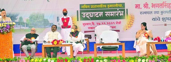 लोकमत न्यूज नेटवर्कअमरावती : देश सर्वार्थाने आत्मनिर्भर होण्यासाठी कृषिक्षेत्रात आत्मनिर्भरता प्राप्त करण्यास प्राधान्य देणे अत्यंत गरजेचे आहे. त्या दृष्टीने डॉ. पंजाबराव देशमुख यांचा शेती विकासाचा संकल्प कृतीत आणण्यासाठी सर्व संबंधित घटकांनी समर्पित भावनेने प्रयत्न करण्याची गरज आहे, असे प्रतिपादन राज्यपाल भगतसिंह कोश्यारी यांनी बुधवारी येथे केले. श्री शिवाजी शिक्षण संस्थेच्या श्री शिवाजी कृषी महाविद्यालयाच्या नवीन प्रशासकीय इमारतीचे उद्घाटन राज्यपाल कोश्यारी यांच्या हस्ते झाले. त्यावेळी ते बोलत होते. कार्यक्रमाच्या अध्यक्षस्थानी संस्थेचे अध्यक्ष हर्षवर्धन देशमुख होते. खासदार नवनीत राणा, आमदार सुलभा खोडके, अमरावतीचे महापौर चेतन गावंडे, संस्थेचे कोषाध्यक्ष दिलीप इंगोले व्यासपीठावर होते.कृषी शिक्षणात श्री शिवाजी शिक्षण संस्थेने दिलेल्या योगदानाबद्दल गौरवोद्गार काढून राज्यपाल पुढे म्हणाले की, देशाचे पहिले कृषिमंत्री डॉ. पंजाबराव देशमुख यांच्याविषयी माझ्या मनात प्रारंभापासूनच आदरभाव आहे. स्वातंत्र्यानंतर स्थापन झालेल्या मंत्रिमंडळात शेतीचा एवढा अग्रक्रमाने विचार करणारे मंत्री आपल्याला लाभले, हे देशाचे भाग्य आहे. त्यांनी शेती विकासाचा प्राधान्याने विचार केला. त्यांच्या विचारांचे मूल्य मोठे आहे. ज्या काळात देश दुष्काळाचा मुकाबला करत होता, त्या काळात कृषीविषयक कार्याला प्राधान्य देऊन पंजाबरावांनी शेती विकासासाठी निष्ठेने प्रयत्न केले, त्यातून देशात कृषी क्रांती घडून आली, असे कृतज्ञ उद्गार त्यांनी काढले.कृषिक्षेत्रात जिओ टॅगिंगसारखे होणारे नवे प्रयोग अत्यंत उपयुक्त आहेत, असे सांगून राज्यपाल म्हणाले की, स्वातंत्र्योत्तर काळात शेतकऱ्यांनी अविरत निष्ठेने केलेल्या कामगिरीमुळे देशाला उपासमारीचे संकट भेडसावण्याची वेळ आली नाही. माझी स्वत:ची बांधीलकी शेतीशी आहे. त्यामुळे शेतीविषयक संस्थांबाबत मला विशेष आस्था आहे, असे आवर्जून सांगून डॉ. पंजाबराव देशमुख यांच्या पापळ या जन्मगावी कृषी महाविद्यालय सुरू होण्यासाठी आवश्यक ते सहकार्य केले जाईल, असे आश्वासन त्यांनी दिले. भाऊसाहेबांनी सुरू केलेली ही संस्था भविष्यात अधिक विकसित व व्यापक व्हावी तसेच शेती अध्ययनासाठी एक आदर्श प्रारूप ठरावी, असा आशावादही त्यांनी यावेळी व्यक्त केला. महापौर चेतन गावंडे, खासदार नवनीत राणा, आमदार सुलभा खोडके यांनी मनोगत व्यक्त केले. प्रास्ताविक संस्थेचे अध्यक्ष हर्षवर्धन देशमुख. संचालन किशोर फुले व आभार प्रदर्शन दिलीप इंगोले यांनी केले.