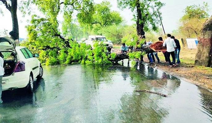 आठवडाभरापासून तालुक्यात मान्सूनपूर्व अवकाळी पाऊस कोसळत आहे. अशातच अचानक रविवारी दुपारी काही क्षणासाठी कोसळलेला मुसळधार पाऊस आणि वादळवाऱ्यात अमरावती परतवाडा मार्गावर एका खासगी पेट्रोल पंप, अचलपूर नाका व मार्गावर अनेक ठिकाणी ठिकाणी मोठे झाड उन्मळून पडली. सामाजिक कार्यकर्ते बबलू चरोडे, गोपाल चरोडे चमक, भूषण घडेकर व काही सहकाऱ्यांनी पडलेले झाड रस्त्याच्या बाजूला करून वाहतूक सुरळीत केली.
