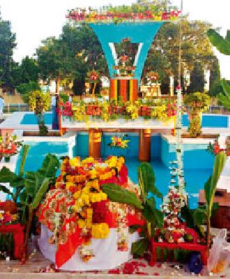 राष्ट्रसंत तुकडोजी महाराज पुण्यतिथी महोत्सव ... गुरूकुंज मोझरी येथे राष्ट्रसंत तुकडोजी महाराजांच्या ४८ व्या पुण्यतिथी महोत्सवाला शुक्रवारी थाटात प्रारंभ करण्यात आला. या उत्सवाच्या निमित्ताने राष्ट्रसंतांच्या महासमधीची अशी आकर्षक सजावट करण्यात आली आहे. पहाटे महासमाधीच्या अभिषेकानंतर राष्ट्रसंतांच्या प्रतिमेची शोभायात्रा काढण्यात आली. यात मानवसेवा विद्यालयाच्या विद्यार्थ्यांचा टाळ पदन्यास, लेझिम पथकाने उपस्थितांचे लक्ष वेधले. हजारो गुरूदेवभक्त या उत्सवात उत्साहाने सहभागी झाले आहेत.