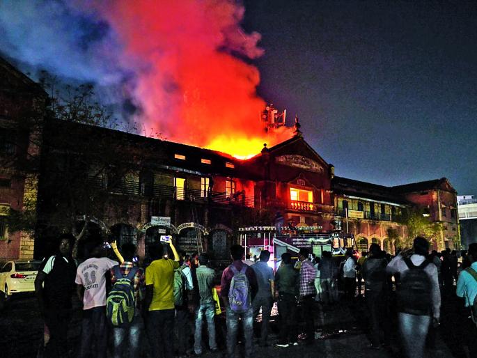 स्थानिक नेहरू मैदानातील महापालिकेच्या लाल शाळेला बुधवारी सायंकाळी ७ वाजताच्या सुमारास भीषण आग लागली.