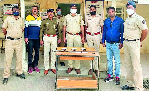 तीन देशी बनावटीच्या पिस्टलसह तलवार जप्त