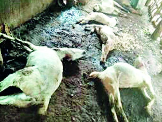 मेळघाट प्रादेशिक वनविभागा अंतर्गत घटांग येथील नामदेव ओझू बेलकर (३४) यांच्या गोठ्यातून सात शेळ्या व दहा कोंबड्या ठार केल्यात. मेळघाटात सर्वत्र पाऊस सुरू असल्याने शनिवारी रात्री वीजपुरवठा सर्वत्र खंडित होता. रविवारी पहाटे ही घटना उघड झाली. रविवारी पहाटे नामदेव बेलकर गोठ्यात गेले असता, शेळ्या मृतावस्थेत दिसल्या. तर कोंबड्यांची पंख पडून होते. प्रादेशिक मेळघाट वनविभागाचे सहायक वनसंरक्षक आणि वन परिक्षेत्र अधिकारी कार्यालय तेथेच आहे. घटांग वनपरिक्षेत्र अधिकारी निशा मोकाशे, वनपाल पी. व्ही. अळसपुरे यांनी पंचनामा केला.