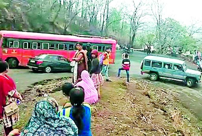 हृदयाचा थरकाप उडविणारा ही घटना रविवारी दुपारी ३ वाजता मोथा गावानजीकच्या सेल्फी पॉइंट वळणावर घडली. एमएच ४० एन ८९३० या क्रमांकाची बस प्रवाशांना घेऊन चिखलदराला जात असताना सेल्फी पॉइंटखालील वळणावर अचानक नादुरुस्त होऊन थांबली. उंच भागावर थांबलेली ही बस मागे येऊ लागल्याने त्यामधील प्रवाशांनी एकच गलका केला. तथापि, चालकाने समयसूचकता दाखवून बस थांबविली. क्षणाचा विलंब न करता प्रवासी बस खाली उतरले. या बसमध्ये जवळपास ३१ प्रवासी होते. रस्त्यावर थांबलेल्या या बसमुळे वाहतुकीला खोळंबा झाला. काही पर्यटकांनी या बसमध्ये प्रवास करणाऱ्या प्रवाशांना बाहेर काढण्यात मदत केली. यासंदर्भात परतवाडा आगाराचे प्रमुख अनिकेत बल्लाळ यांच्याशी संपर्क होऊ शकला नाही.