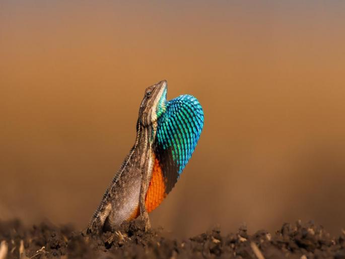 पुणे, नाशिक, अहमदनगर व जालना वगळता उर्वरित महाराष्ट्रात याचे दर्शन दुर्मिळ आहे. या सरड्याला ‘निलपंखी सरडा’ नावानेही ओळखले जाते. या सरड्याची लांबी २२ ते २३ सेमी पर्यंत असून आकाराने हा सरडा आकारणे लहान असून लहान कीटक याचे मुख्य खाद्य आहे. या प्रजाती बद्दलचे वर्णन पहिल्यांदा शास्त्रज्ञ जॉर्डन यांनी ई.स. १८७० मध्ये केले आहे. हा सरडा भारतासाठी स्थानविशिष्ट प्रजाती म्हणून जगप्रसिद्ध आहे. या सरड्याचे पृथ्वीवर अस्तित्व २६ लाख वर्षापूर्वी असल्याची नोंद आहे. अमरावती परिसरात या सरड्याच्या दर्शनाने येथील जैवविविधेतेचे महत्व पुन्हा नव्याने अधोरेखित झाल्याचे जाणकारांचे मत आहे. जागतिक स्तरावर निलपंखी सरड्यावर संशोधनजगप्रसिद्ध सरीसृप तज्ञ डॉ. वरद गिरी, डॉ. दीपक वीरप्पन, मोहम्मद असिफ काझी व के. प्रवीण कारंथ यांच्या संशोधनादरम्यान त्यांना हा सरडा पुणे, नाशिक, अहमदनगर व जालना वगळता उर्वरित महाराष्ट्रात आलेला नव्हता. त्यांनी संपूर्ण भारतभर तब्बल तीन हजार सहाशे किमी फिरून यावर संशोधन केले आहे. या सरड्याच्या तब्बल पाच नवीन प्रजाती त्यांनी शोधून काढल्या आहेत, या पाचही प्रजाती जगासाठी नवीन ठरलेल्या आहेत. या सरड्याचे दर्शन चकित करणारे आहे. ही नोंद महत्त्वपूर्ण असून या नोंदीसह आजवर अनेक दुर्मिळ प्रजातींचे दर्शन आपल्या भागात झाले आहे. या अनुषंगाने विदर्भातील भूस्थित परिसंस्था व कृषी परिसंस्थाचे संवर्धन होणे गरजेचे वाटते. - यादव तरटे पाटील, वन्यजीव अभ्यासक, अमरावती या सरड्याचे दर्शन मनाला आनंद देणारे आहे. आम्ही देशी- विदेशी पक्षी छायाचित्रे व वन्यप्राणी टिपण्यासाठी नियमित जात असतो. या सरड्याचे दर्शन आम्हाला प्रेरणा देणारे आहे. - डॉ. तुषार अंबाडकर, वन्यजीव छायाचित्रकार, अमरावती