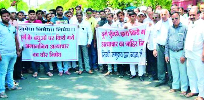 दुर्ग येथील घटनेचा निषेध नोंदविण्यासाठी शनिवारी सिंधी समाज बांधवांनी मूक मोर्चा काढून जिल्हाधिकारी कार्यालयावर धडक दिली. जिल्हाधिकारी अभिजित बांगर यांना निवेदन सादर करून दुर्ग येथील पोलिसांनी केलेल्या अमानवी अत्याचाराचा निषेध नोंदविला.