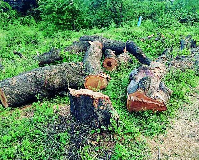 अंजनगाव-बैतुल मार्गावर हिरव्या झाडांची कत्तल