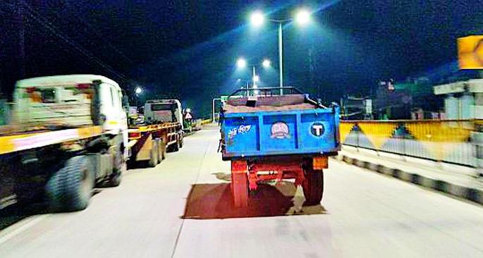 शहरातून ओव्हरलोड वाळूच्या टिप्परची निर्धोक वाहतूक