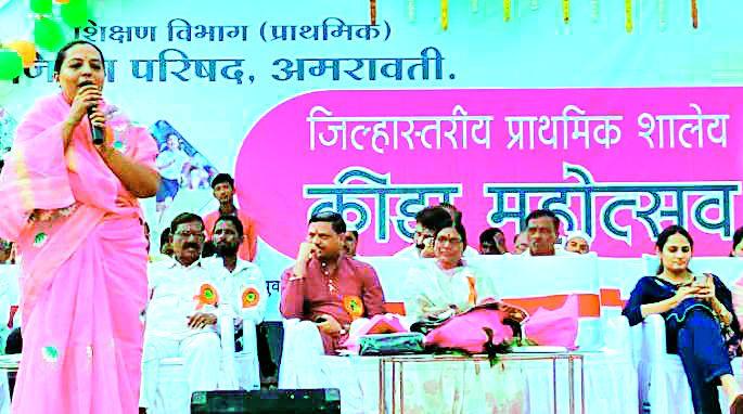 शिराळा येथील कस्तुराबाई विद्यालय, कनिष्ठ व वरिष्ठ महाविद्यालयाच्या प्रांगणात जिल्हास्तरीय प्राथमिक शालेय क्रीडा महोत्सवाचे गुरुवारी उद्घाटन झाले. याप्रसंगी त्या बोलत होत्या. अध्यक्षस्थानी जि.प. अध्यक्ष नितीन गोंडाणे, प्रमुख अतिथी उपाध्यक्ष दत्ता ढोमणे, शिक्षण व बांधकाम सभापती जयंत देशमुख, वित्त व आरोग्य समिती सभापती बळवंत वानखडे, समाजकल्याण सभापती सुशीला कुकडे, सीईओ मनीषा खत्री, राज्य शिक्षण समितीचे अध्यक्ष मनोज देशमुख, पं.स. सभापती वहीदाबी इसूफ शहा, शिक्षण समिती सदस्य अलका देशमुख, श्याम मसराम, अनिल डबरासे, राजेंद्र बहुरूपी, पं.स.सदस्य संगीता तायडे, अजय भुयार, गणेश कडू, वीरेंद्र लंगडे, शिराळाचे सरपंच सचिन देशमुख, उपसरपंच तेजस्विनी आमले, जाधव, सचिन पाटील, रमेश खातदेव, सुनील कडू, प्रमोद गावंडे, जियाभाई, मुकुंद देशमुख, गजानन झाकर्डे, लोकेश केणे उपस्थित होते.