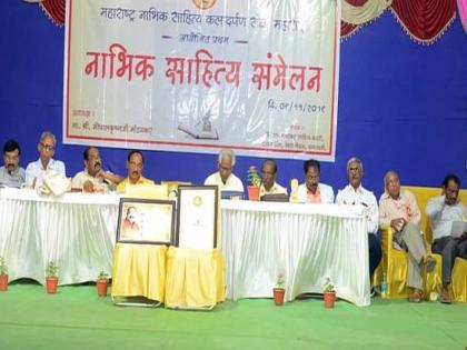 महाराष्ट्र नाभिक साहित्य कलादर्पण संघ, अमरावतीद्वारे येथील टाऊन हॉलमध्ये शनिवारी आयोजित प्रथम महाराष्ट्र नाभिक साहित्य संमेलनाचे अध्यक्षीय भाषण गोपालकृष्ण मांडवकर यांनी केले. व्यासपीठावर स्वागताध्यक्ष शरद ढोबळे, साहित्य अभ्यासक प्रकाश नागपूरकर, ज्येष्ठ साहित्यिक उत्तमराव बिडवे, शिवलिंग काटेकर, संजय येऊलकर, राजेंद्र अमृतकर, गोपाल कडूकर, श्याम आस्करकर, कल्पना निंबोकर, सुधीर राऊत, विशाल कान्हेरकर आदी उपस्थित होते.