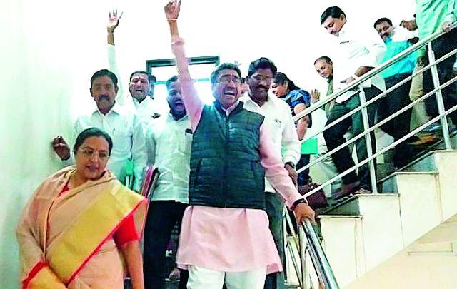 अमरावती : कुठल्याही मुद्यावर चर्चा न करता डीपीसीची सभा गुंडाळल्याचा आरोप करीत आ. यशोमती ठाकूर व वीरेंद्र जगताप, झेडपी अध्यक्ष नितीन गोंडाणे यांनी ‘भगोड्या पालकमंत्र्यांचा निषेध असो’, असे नारे देत रविवारी नियोजन भवन दणाणून सोडले.