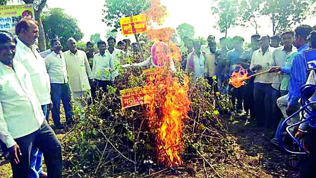आॅनलाईन लोकमतअमरावती : गुलाबी बोंडअळीने संपूर्ण कपाशीचे पीक उद्ध्वस्त झाले असताना शासनस्तरावर कोणताही निर्णय नाही. यामुळे भातकुली तालुक्यातील पूर्णानगर येथील संतप्त शेतकऱ्यांनी शुक्रवारी शासनाच्या निषेधाच्या घोषणा देत मुख्यमंत्र्यासह कृषिमंत्र्यांच्या प्रतिकात्मक पुतळ्याचे दहन व अंत्यविधी केला.पूर्णानगर व परिसरातील बीटी कपाशीवर गुलाबी बोंड अळीचा मोठ्या प्रमाणावर हल्ला झाला. याप्रकरणी कृषी विभागाद्वारा कोणतीही हालचाल न झाल्याने शेतकऱ्यांनी कृषी विभागाकडे लेखी तक्रारी केल्यात. त्यानंतर जिल्हा समितीने पाहणी केली असता, कपाशीचे ९६ टक्के बोंडे किडली असल्याचा अहवाल शासनाला दिला. मात्र, यानंतरही शेतकऱ्यांना भरपाई मिळावी, यासाठी कोणताही शासनादेश झालेला नाही. उत्पादन खर्च निघत नसल्याने शेतकऱ्यांनी कपाशीच्या उभ्या पिकात नांगर फिरविला. कृषी विभागातील समितीच्या अहवालानुसार या परिसरातील शेतकऱ्यांचे एकरी किमान सव्वा लाख रुपये नुकसान झाले असताना, बियाणे कंपनी किंवा शासनाने शेतकऱ्यांना भरपाई दिली नाही. त्यामुळे संतप्त शेतकºयांनी निषेधाच्या घोषणा देत तत्काळ भरपाईची मागणी केली. आंदोलनात बीटी बोंडअळी त्रस्त समितीचे उमेश महिंगे, संजय माकोडे, प्रमोद इटके, अंकुश जुनघरे, कळसकर गुरूजी, हरिभाऊ तायडे, विजय गुंडाले, छोटू देशमुख आदी उपस्थित होते.बाधित खरीप अन् शेतकऱ्यांचा आक्रोशयंदाचा खरीप हंगाम अपुऱ्या पावसामुळे बाधित झाल्याने मूग, उडीद व सोयाबीन उद्ध्वस्त झाले. यामधून जी पिके वाचलीत, त्या शेतमालास हमीभावही मिळत नाही. त्यामुळे शेतकऱ्यांची सर्व मदार कपाशीवर होती. मात्र, यंदा बीटी कपाशीवर मोठ्या प्रमाणात गुलाबी बोंड अळीचा हल्ला झाल्याने शेतकºयांना उत्पादनखर्चही निघणे मुश्कील झाले आहे.
