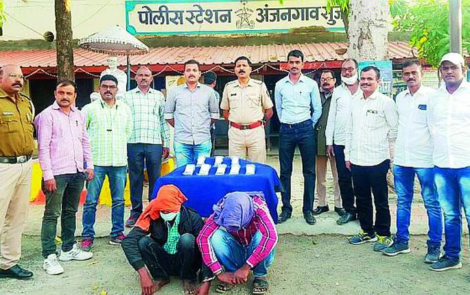 लोकमत न्यूज नेटवर्कअंजनगाव सुर्जी : तालुक्यातील टाकरखेडा मोरे येथील संत गुलाबबाबा मंदिरातील चोरीप्रकरणी स्थानिक पोलिसांनी दोन सराईत चोरांना अटक केली आहे. त्यांनी टाकरखेडा मोरे येथील चोरीसह अन्य एका घरफोडीची कबुली दिली आहे. आरोपींकडून १२ लाख ७० हजार ६२० रुपये किमतीची चांदी जप्त करण्यात आली आहे. शेख आरिफ ऊर्फ काला आरीफ शेख हारून (३५, अंजनगाव सुर्जी) व सलीम खाँ नईम खाँ (२६, कोकाटखेल, ता. अंजनगाव सुर्जी) अशी अटक केलेल्या आरोपींची नावे आहेत. टाकरखेडा मोरे येथील संत गुलाबबाबा मंदिरातून २२ किलो ७० ग्रॅम वजनाची चांदीची चादर, छत्री, पादुका व पत्रा असा ऐवज चोरीला गेला होता. याबाबत गोपाल उमक यांनी २८ जानेवारी रोजी अंजनगाव पोलिसांत तक्रार नोंदविली होती. त्याअनुषंगाने या चोरीचा तपास करण्याचे निर्देश पोलीस अधीक्षकांनी स्थानिक पोलीस व गुन्हे शाखेला दिले होते. स्थानिक गुन्हे शाखेचे उपनिरीक्षक आशिष चौधरी, किशोर मोतिंगे व त्यांचे पथक अंजनगाव हद्दीत मालमत्तेसंबंधी गुन्ह्यातील आरोपीचा शोध घेत असताना, टाकरखेडा मोरे येथील मंदिरातील चोरीचा आरोपी दत्तघाट परिसरात फिरत असल्याची माहिती मिळाली. त्या माहितीवरून ४ डिसेंबर रोजी आरोपी काला आरीफ व सलीम खाँ यांना दत्तघाट परिसरातून ताब्यात घेण्यात आले. पोलिसी खाक्या दाखवताच दोन्ही आरोपींनी गुलाबबाबा मंदिरात दोनदा चोरी केल्याची कबुली दिली. त्यासोबतच आरोपी शेख आरीफ याने अंजनगाव सुर्जीतील सायराबानो मो. रहमान यांच्या घरी चोरी केल्याची कबुली दिली. संत गुलाबबाबा मंदिरातील १२ लाख ७० हजार रुपये किमतीची २ किलो १७७ ग्रॅम चांदी जप्त करण्यात आली. शेख आरीफ हा सराईत गुन्हेगार असून, यापूर्वीही त्याने घरफोडी व चोरीचे गुन्हे केले आहेत. ही कारवाई पोलीस अधीक्षक हरिबालाजी एन., अपर पोलीस अधीक्षक श्याम घुगे यांच्या नेतृत्वात स्थानिक गुन्हे शाखेचे निरीक्षक तपन कोल्हे व अंजनगावचे ठाणेदार राजेश राठोड यांच्या मार्गदर्शनात पोलीस उपनिरीक्षक आशिष चौधरी एलसीबी पथकाने केली.