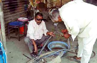 अंधत्वातही ‘ते’ करतात सायकल दुरूस्ती