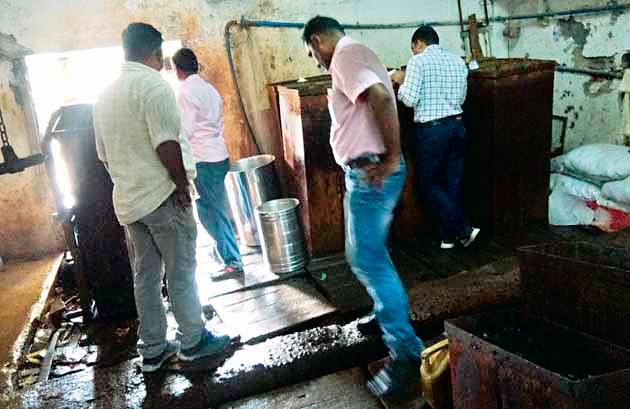 बर्फ तयार करण्याच्या लोखंडी पत्र्याच्या डब्यामध्ये दुधाचा बर्फ करण्यासाठी अस्वच्छ ठिकाणी दूध साठविण्यात आला. माहितीच्या आधारे अन्न व प्रशासन विभागाने तत्क्षण धाड टाकून दोन हजार लीटर दूध जप्त केले.