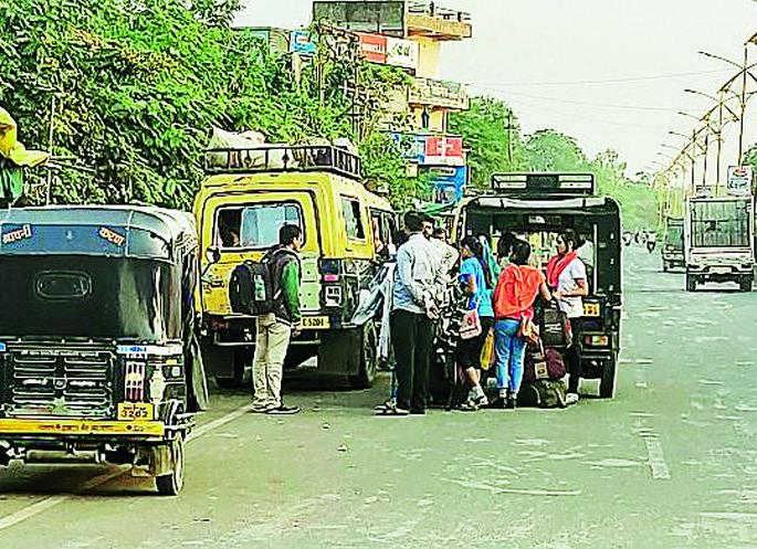 बसस्थानकापुढेच रांगापरतवाडा बसस्थानकापुढे खासगी प्रवासी वाहून नेणाऱ्या बसगाड्या, काळी-पिवळी, ऑटोरिक्षा अमरावती मार्गावर इतर ठिकाणी जाण्यासाठी लागत आहेत. दुसरीकडे परिवहन महामंडळाचे चालक-वाहक कर्मचारी संपावर असून, त्यांच्या बसगाड्या कुलूपबंद आहेत.