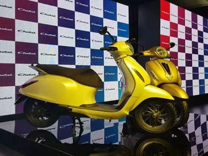 बजाज ऑटोनं नवी आयकॉनिक चेतक ही इलेक्ट्रिक स्कूटर एका प्रदर्शनात ठेवली आहे.