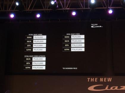 सियाझमध्ये 1.5 लिटर के 15 बी पेट्रोल इंजिन आणि 1.3 लिटर डीडीआयएस डिझेल इंजिन देण्यात आले आहे. दोन्ही इंजिने हायब्रिड सुविधेसहीत देण्यात आली आहेत. सियाझमध्ये एकूण 11 व्हेरिअंट सात रंगात उपलब्ध आहेत. महत्वाचे म्हणजे पेट्रोल कार 22.52 किमी प्रती लिटर आणि डिझेल 28.09 किमी प्रती लिटर मायलेज देणार असल्याचा दावा कंपनीने केला आहे.