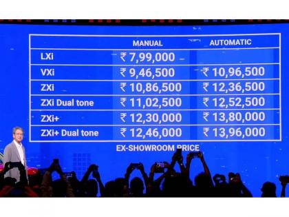 कारमध्ये सराऊंडेड साऊंड सेन्स ऑडियो टेक्नोलॉजी देखील देण्यात आली आहे. तसंच केबिनमध्ये तुम्हाला अॅम्बियन्स मूड लायटिंग, वायरलेस चार्जिंगसारखे फिचर्स देखील मिळणार आहेत. कारमधील इन्फोटेन्मेंट सिस्टम व्हाइस कंट्रोलवर काम करेल. एकूण ९ रंगात कार उपलब्ध होणार आहे. तर ही कार Lxi, VXi, ZXi आणि ZXi Plus अशा व्हेरिअंटमध्ये उपलब्ध करुन देण्यात येणार आहे.