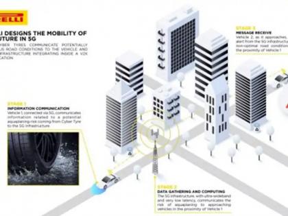 Ericsson, Audi, Tim, Italdesign आणि KTH सोबत पिरेलीने सेन्सर फिटेड सायबर टायरचे वाहन आणि 5G नेटवर्कशी संबंधित एक प्रदर्शन भरविले होते. टायर हा वाहन आणि रस्त्याशी संपर्कात असणारा एकमेव केंद्रबिंदू आहे. या नव्या तंत्रज्ञानामुळे टायर चालकासह वाहनालाही सूचना देऊ शकतो.