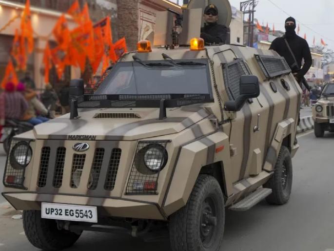 Ram Mandir Ayodhya: अयोध्येतील श्रीराम मंदिरात रामलला विराजमान झाले. या सोहळ्यादरम्यान शहरात कडेकोट सुरक्षा व्यवस्था ठेवण्यात आली. एआय कॅमेऱ्यापासून ते ड्रोनपर्यंत आधुनिक तंत्रज्ञानाचा वापर केला आहे. दरम्यान, या सोहळ्यासाठी खास मेड इन इंडिया बुलेट प्रूफ वाहने तैनात करण्यात आली आहेत. ही बुलेटप्रूफ वाहने Mahindra कंपनीने तयार केली आहेत. Mahindra Marksman असे या खास गाडीचे नाव आहे. या वाहनाचे वैशिष्ट्य म्हणजे बंदुकीच्या गोळ्यांशिवाय त्यावर ग्रेनेडचाही परिणाम होत नाही.